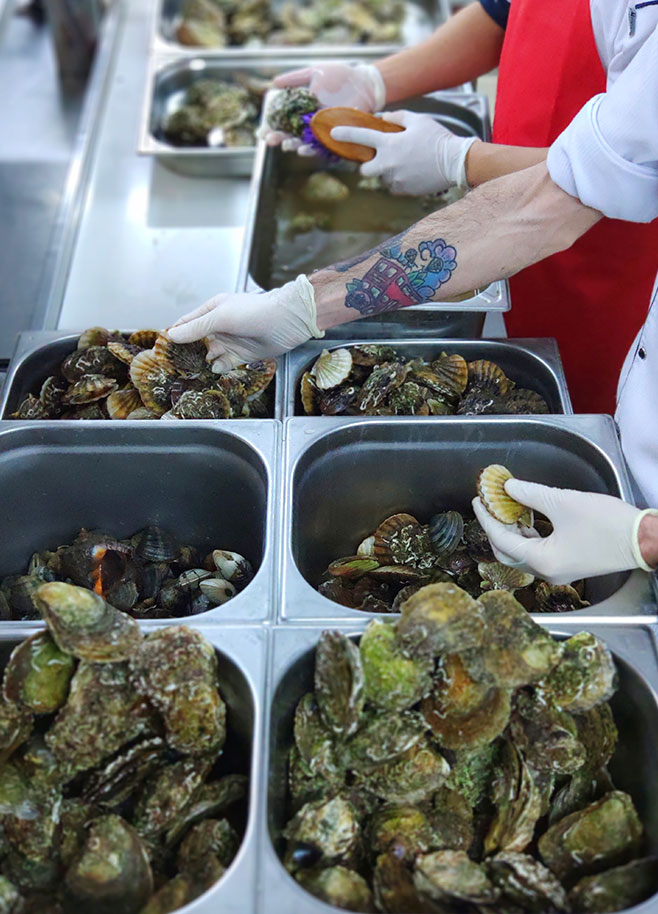 Ege Denizi'nin eşsiz ve bol çeşitli doğasından esinlenerek oluşturduğumuz menümüzde, kabuklu deniz ürünlerinin en güzel örneklerini misafirlerimizle buluşturmaktayız.